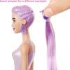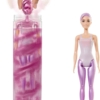 Ogni bambola ha una diversa combinazione di colore degli occhi, colore dei capelli metallizzati scolpiti, tonalità della pelle, body decorato e gambe metallizzate scintillanti, ma le sorprese continuano. Apri i sacchetti per scoprire un’acconciatura per capelli a coda di cavallo, gonna brillante e scarpe e orecchini a completo. Gli effetti cambia colore sulle labbra della bambola e sul body decorato aggiungono sorpresa e divertimento. Ogni serie ha un tema unico: queste bambole Color Reveal sono scintillanti e luminose, con capelli scolpiti, gambe metallizzate e colorate acconciature da collegare ai capelli.