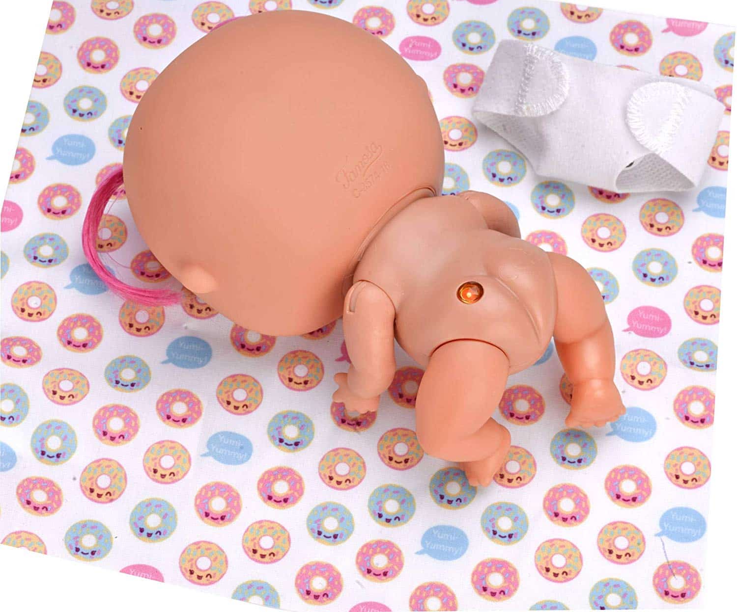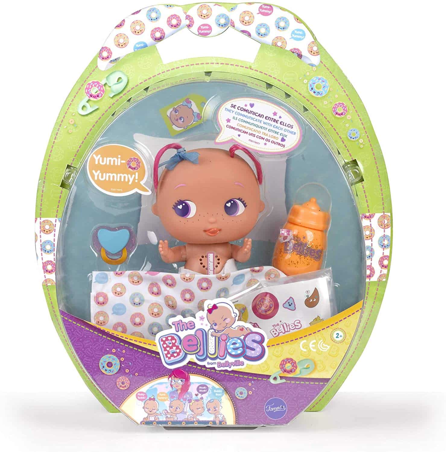 I Bellies sono bambini un pò indisciplinati ma carini e divertenti da adottare. Yumi Yummy è dolce e adora mangiare. Il suo scherzo preferito è quello di assaltare il frigorifero e il suo colore preferito è l’arancione. E’ pieno di sorprese: il suo cuore suonerà se rimuovi il cordone ombelicale, parlerà con un suo linguaggio molto divertente e diverso dagli altri Bellies. Con una voglia a sorpresa e una simpatica sorpresa nel pannolino. Collezionali tutti. Accessori inclusi: asciugamano decorato con ciambelle, biberon, braccialetto di identificazione e carta di appartenenza a Bellypedia.