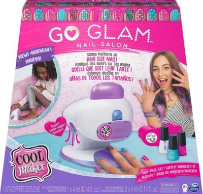Questo kit include tutto il necessario per decorare fino a 125 unghie di qualunque dimensione, proprio come in un beauty salon. Ora, include anche una ventolina incorporata. Con cinque decorazioni per unghie alla moda tra cui scegliere, con farfalle, stelle, impronte di leopardo e non solo, le ragazze possono creare nuove combinazioni per esprimere il proprio stile unico. Ottenere unghie ottime è facilissimo: basta inserire la cartuccia, passare lo smalto e premere. Per cominciare, va scelto un motivo e inserito nella macchina. Quindi, va steso lo smalto, a scelta tra quelli colorati Go Glam, – atossici e inclusi in due colori – poi, posizionate le unghie sotto la ventolina, basta premere il pulsante per farle asciugare in cinque minuti. Infine, va inserita un’unghia alla volta nella macchina e premuto il pulsante per decorarla. A conclusione, si può applicare uno strato di smalto fissante trasparente (incluso) e si è pronte per sfoggiare lo stile Go Glam.