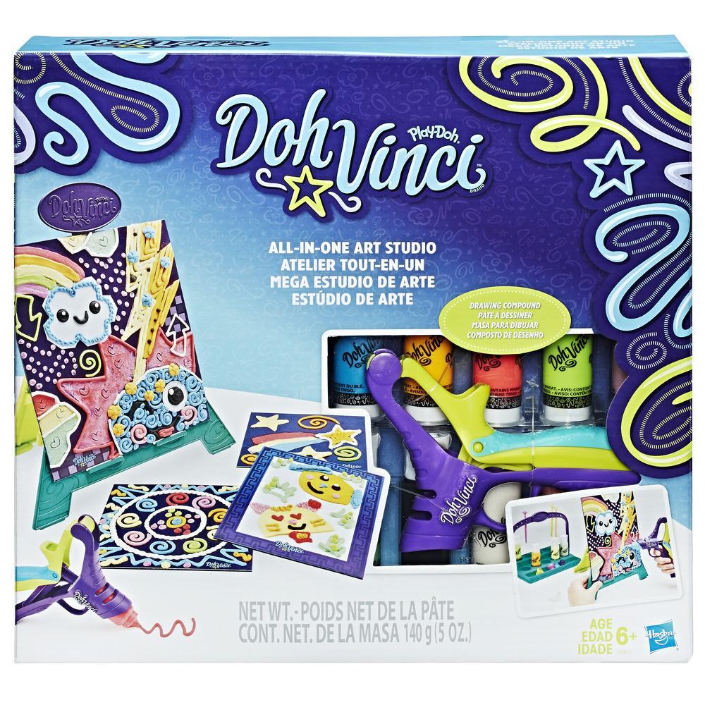 Comprende un cavalletto smontato, un barattolo, uno Styler Easy Squeeze, 4 tavole da disegno, 3 accessori per modellare, uno accessorio a trama, 5 punte specializzate, 10 tubetti di pasta DohVinci e una guida creativa.