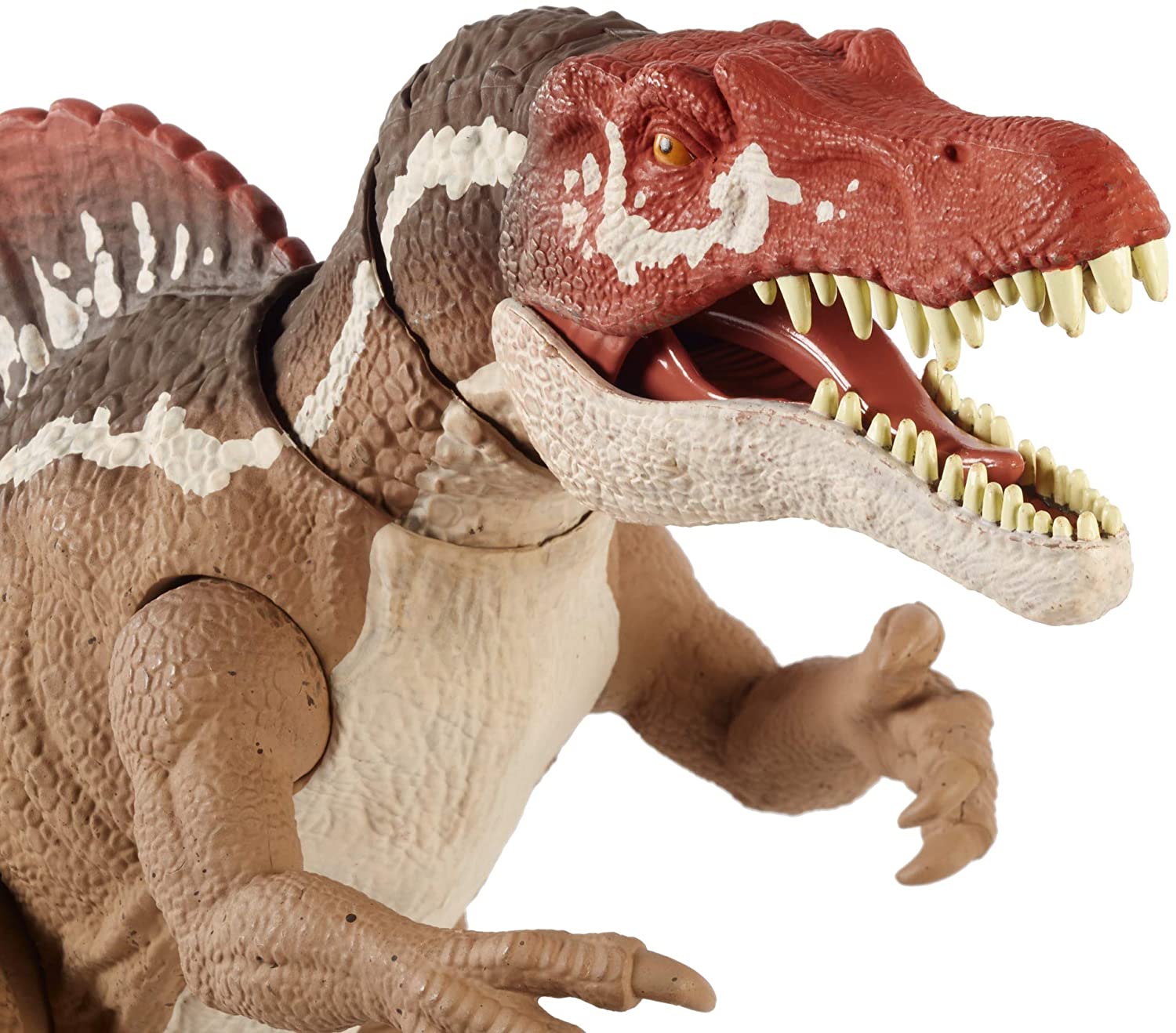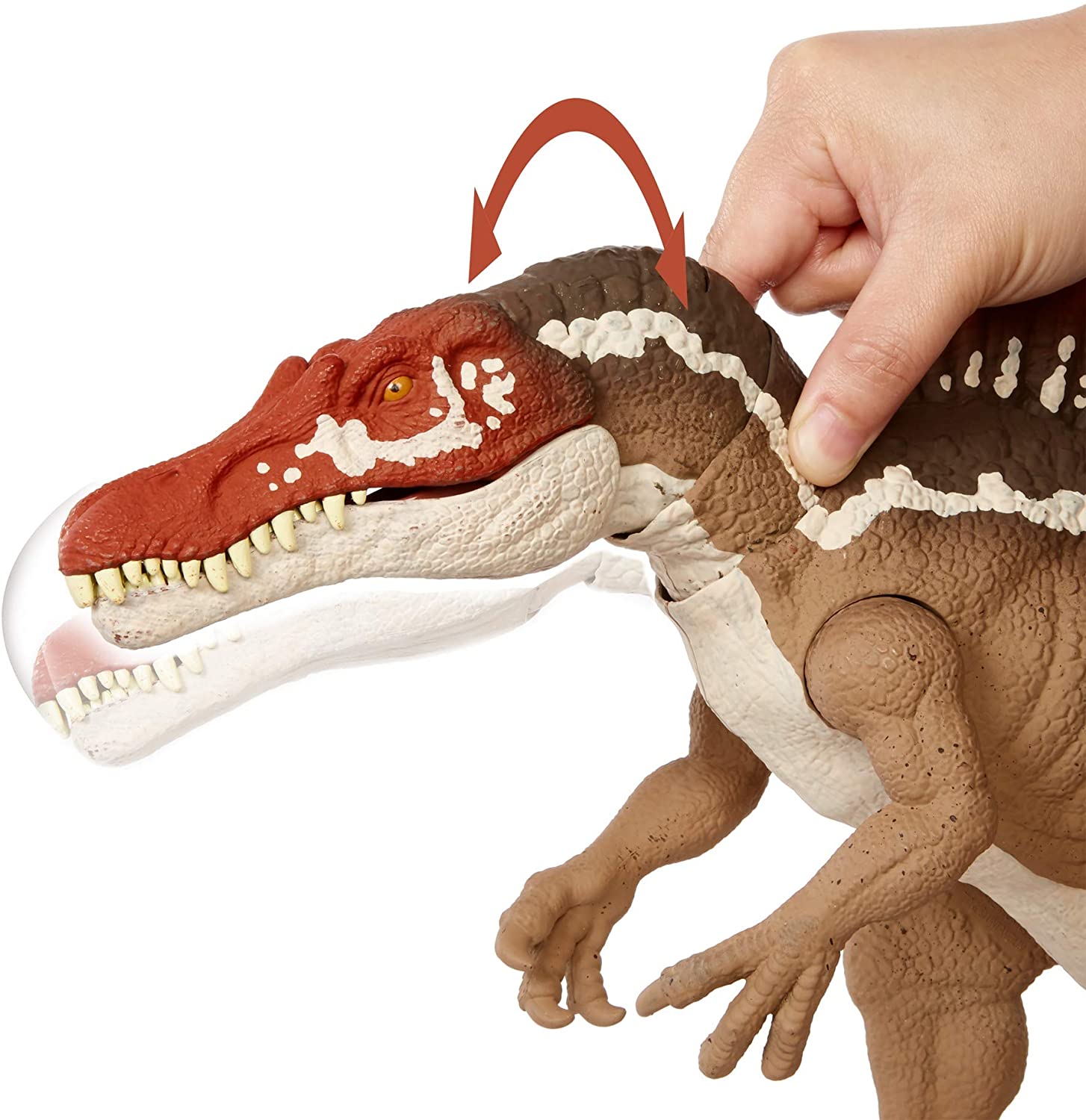 Preparati per altre emozioni e avventure con Jurassic World! Questa figura di dinosauro Spinosauro Morso Estremo cattura l’ultima azione di battaglia! Questa figura presenta un ENORME MORSO, scultura realistica e decorazione autentica. Per il divertimento e la giocabilità extra-azione, la testa, le braccia, le gambe e la coda dello Spinosauro Morso Rstremo sono articolate. Quando la preda viene catturata, basta usare l’attivazione del pulsante per spostare la mascella e questa incredibile creatura espone enormi denti e un ENORME MORSO!