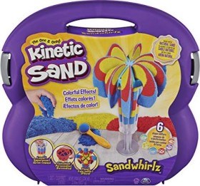 900 gr. di sabbia nei colori primari rosso, giallo, blu. Aprendo la valigetta si crea un’area gioco in cui inserire i 2 tubi sagomati, compattare la sabbia con l’apposito accessorio, posizionare gli anelli nella parte superiore e spingere la sabbia verso l’alto. In questo modo la sabbia uscirà come una cascata colorata. Ogni anello produrrà un effetto diverso.