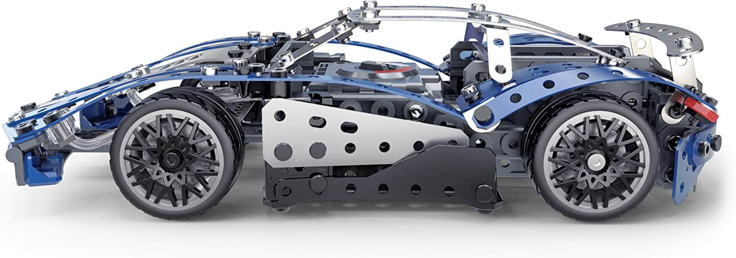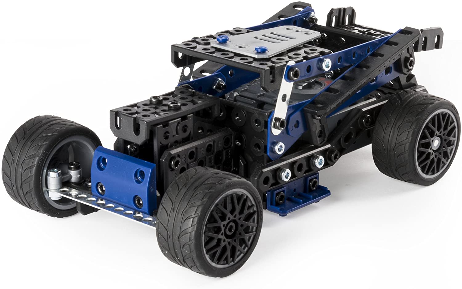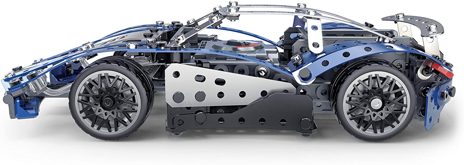 Con questo set Meccano è possibile creare fino a 25 modelli diversi di veicolo. Grazie agli strumenti inclusi, ci si può divertire a unire i pezzi di metallo per creare il corpo del veicolo e poi completare l’opera con la carrozzeria in plastica. Sono anche inclusi pezzi speciali, come un motore a velocità variabile e le tubature trasparenti che si illuminano con luce LED. Tramite le istruzioni si possono creare 25 modelli, ma tramite l’ingegno, le possibilità sono infinite. Meccano è un gioco S.T.E.A.M., ovvero che incoraggia l’apprendimento dei concetti di scienza, tecnologia, ingegneria, arte e matematica. Un gioco intergenerazionale, che appassiona da sempre e adatto dai 10 anni in su.