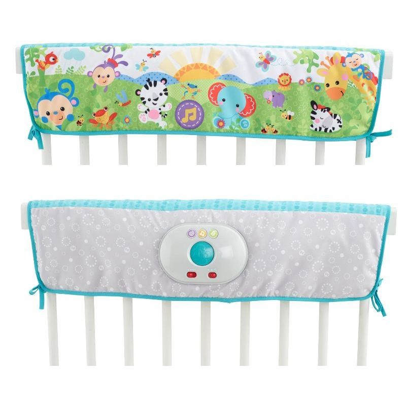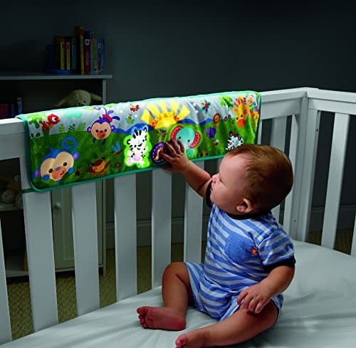 Mattel Fisher Price CHG19 – Piano Morbido della Foresta. Il primo piano morbido per lettino!Questo piano morbido ha tre opzioni di luci diverse, fino a 30 minuti di musica calmante, rumori bianchi e suoni della natura e simpatici animali per intrattenere e confortare il vostro bambino! Il pannello di facile accesso è rivolto verso l’esterno, incorniciato da un tessuto neutro per inserirsi perfettamente nell’arredo della cameretta. 3 opzioni di luci:- Proiezione con luci intermittenti- Sequenza di luci- Luci spente. Attiva fino a 30 minuti di musica rilassante, rumori bianchi e suoni della natura. Le luci, i suoni e la musica aiutano a rilassare e confortare il bambino nel lettino. Dopo 5 minuti la proiezione di luci rallenta per ridurre la stimolazione e cullare il bambino per farlo addormentare. Gli amici animali aiutano a confortare e intrattenere. Il pannello di controllo è di facile accesso e semplice da azionare. Due lati! Una scena colorata per il bambino su un lato; tessuto neutro sull’altro per adattarsi all’arredo della cameretta. Richiede 4 pile formato stilo AA.