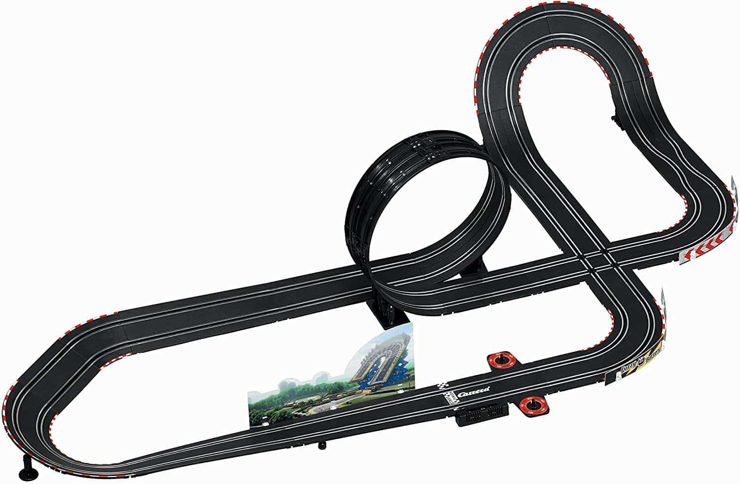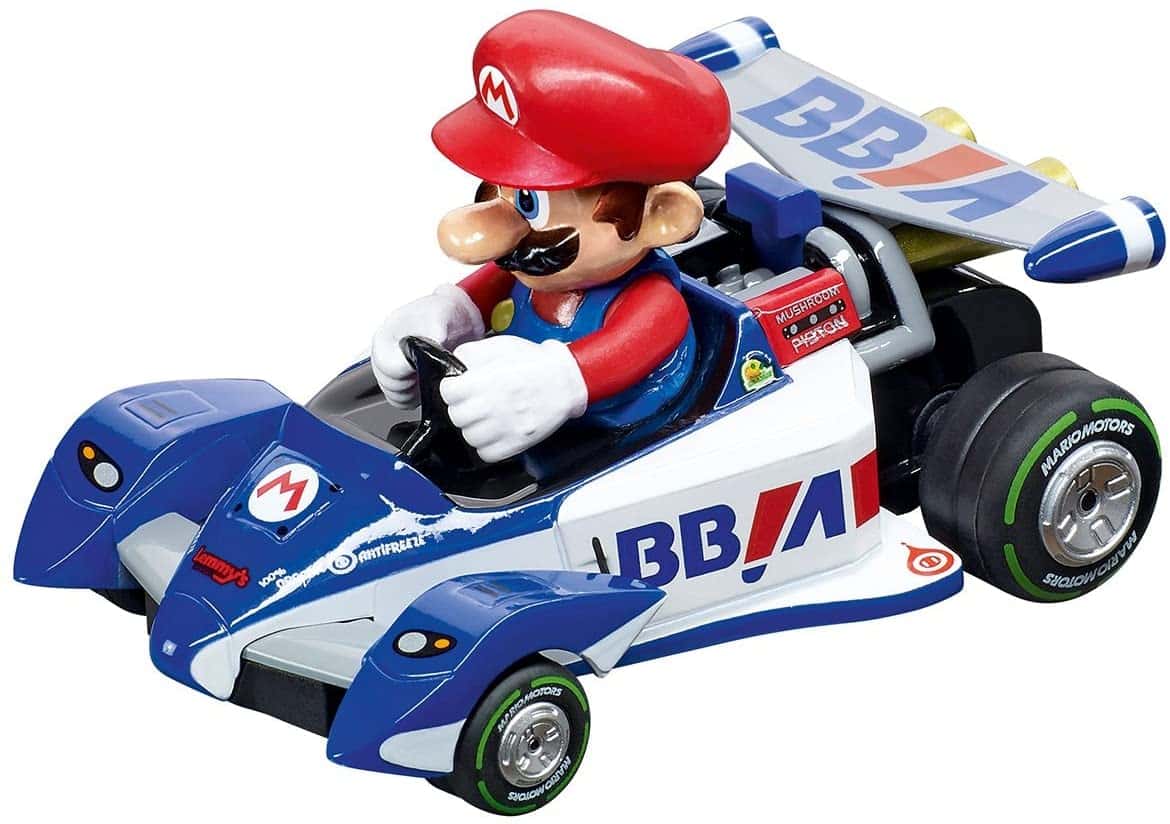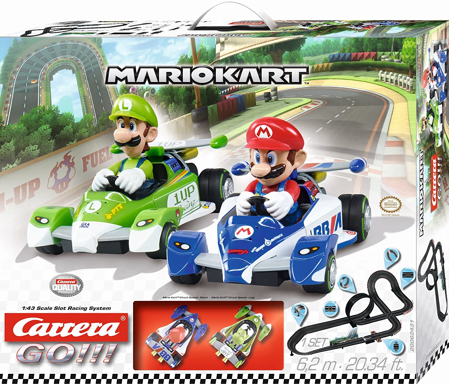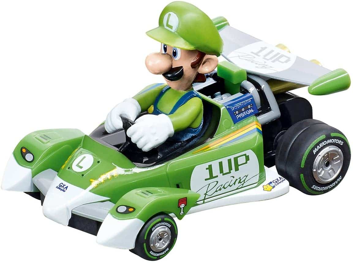 Un abbinamento perfetto Mario e Luigi saltano nella loro nuova Special Circuit Kart per un giro veloce intorno alla pista Carrera GO !!!. Chi dei due arriverà primo stavolta? Dopo il cavalcavia corrono a tutta velocità lungo l’anello e prendono tutto lo slancio nella ripida curva. La pista lunga 6,2 metri vanta un cavalcavia, un incrocio e rettilinei ad alta velocità per una perfetta esperienza da far accapponare la pelle su un inseguimento selvaggio. I fratelli di fama mondiale della serie di Mario Kart regaleranno un testa a testa pieno d’azione e velocità. Alle loro auto è stato dato un design stiloso con un aspetto puramente da racing per una simile battaglia. E ‘il momento per un testa a testa emozionante!La pista comprende il trasformatore.