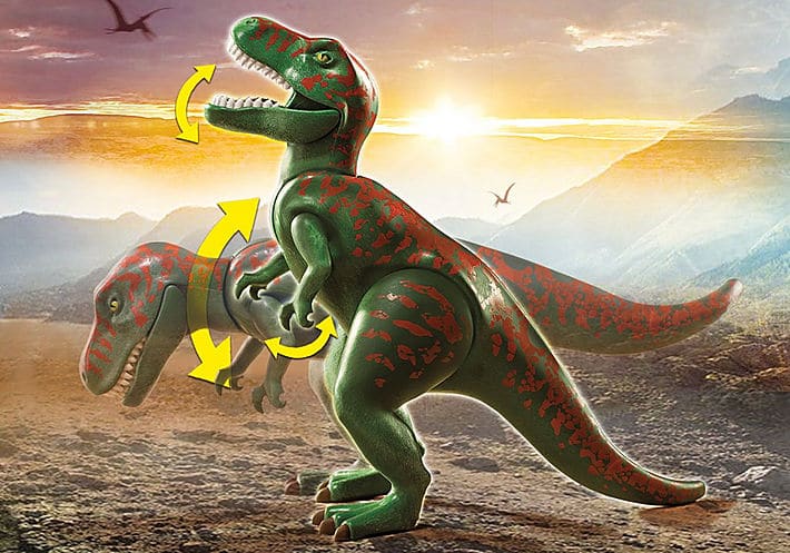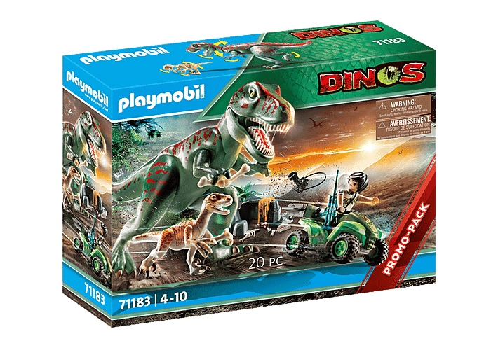Il ricercatore esplora le terre selvagge a bordo del suo quad, quando un terribile T-Rex lo vede e parte al suo inseguimento. Il ricercatore dovrà correre molto veloce per sfuggire al T-Rex e al Deinonychus! Un fantastico set del mondo dinosauri, per giurassiche avventure di gioco. Il set include un ricercatore PLAYMOBIL con pistola e macchina fotografica, un T-Rex, un Deinonychus, un quad e una roccia. Il personaggio può essere fissato al quad grazie alla cinghia in silicone. I dinosauri possono inclinare la testa su e giù, aprire le mascelle inferiori e muovere tutte le zampe.