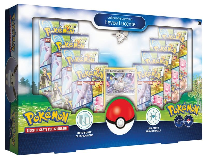 Uno dei giochi per telefono più popolari degli ultimi anni si fa cartaceo. La nuova espansione per il Gioco di Carte Collezionabili di Pokémon è interamente dedicata a Pokémon GO! e un’ondata di carte potenti e uniche entra sulla scena. E questa volta non ti servirà nemmeno camminare, per farle tue! Celebra il tenerissimo Eevee con questa Collezione Premium dedicata alla sua versione Lucente.