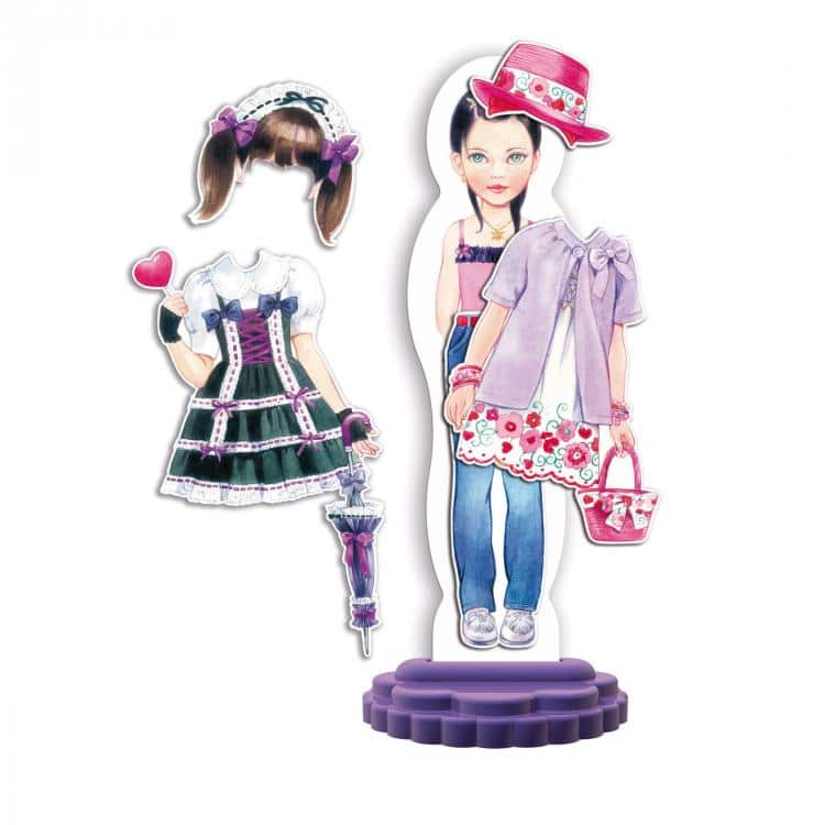 Un grande intramontabile classico, le bambole di carta da vestire, con cui intere generazioni di mamme e figlie si sono molto divertite, viene ora riproposto da Quercetti in una nuovissima versione magnetica, più facile da giocare e decisamente più alla moda. Con Fashion Design sarà irresistibilmente coinvolgente vestire in mille modi diversi le tre scatenate sorelline: ad ognuna il look più adatto alla propria prorompente personalità! Diventa anche tu una stilista famosa: i colori, i capi da indossare attentamente selezionati e dallo stile inconfondibile, gli accessori da abbinare, le acconciature, tutto è stato fatto per soddisfare la tua voglia di moda. In più, ciascuna bambolina ha due lati su cui giocare: due posture diverse oltreché due pettinature per infinite ore di gioco creativo in piena sicurezza.