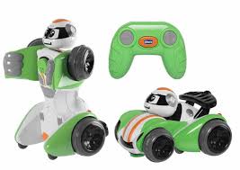 Si trasforma da robot a veicolo con tre semplici movimenti abbassa le braccia, fai scorrere la testa e richiudi le ruote posteriori inoltre attraverso il radiocomando è possibile controllare luci e suoni.