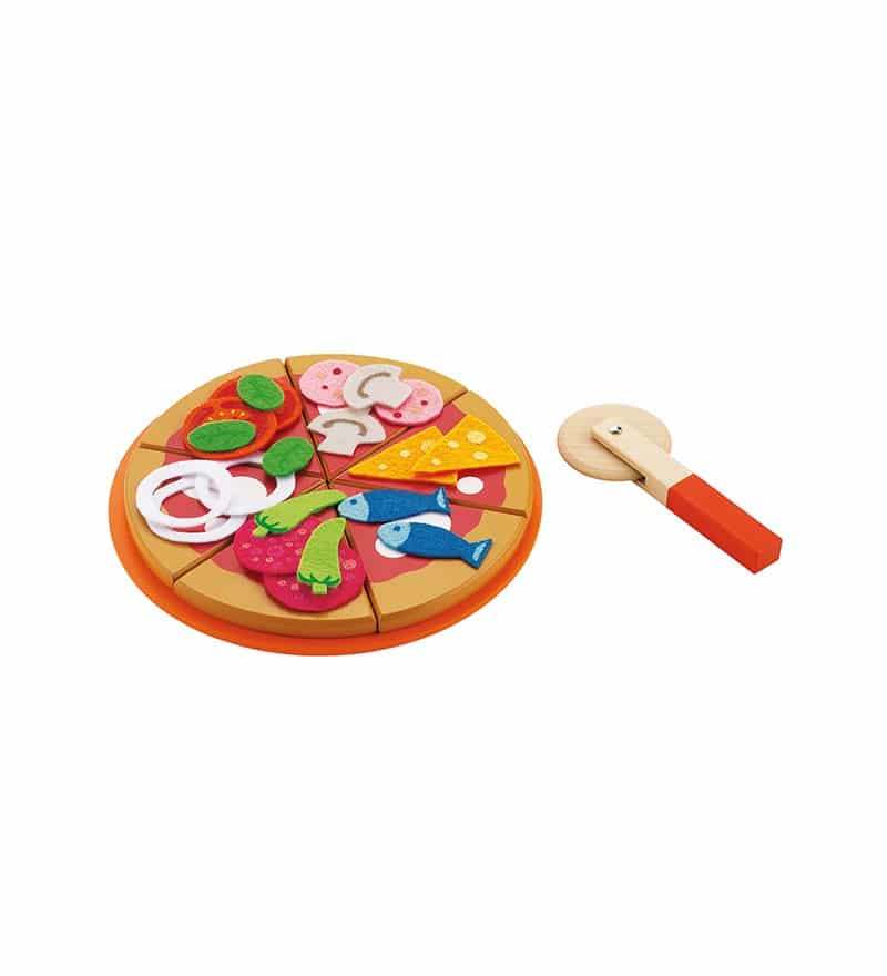Ecco un set pizza realizzato in legno, ricco di accessori per aumentare il gioco e il divertimento! La pizza è presentata su un piatto da portata, già tagliata in 6 spicchi e guarnita con tantissimi ingredienti in feltro… per creare ogni giorno un gusto diverso! Il set comprende anche la rotella taglia pizza. L’articolo è composto da 30 pezzi. Tutte le vernici utilizzate sono atossiche e resistenti, nel rispetto delle più severe normative vigenti.