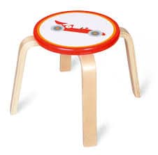 Una divertente sgabello in legno dal design nordico. Completamente realizzata in legno di faggio e dipinta con vernice ad acqua. Gambe color legno e seduta a 28 cm di altezza bianco con dipinta un’auto di formula uno.