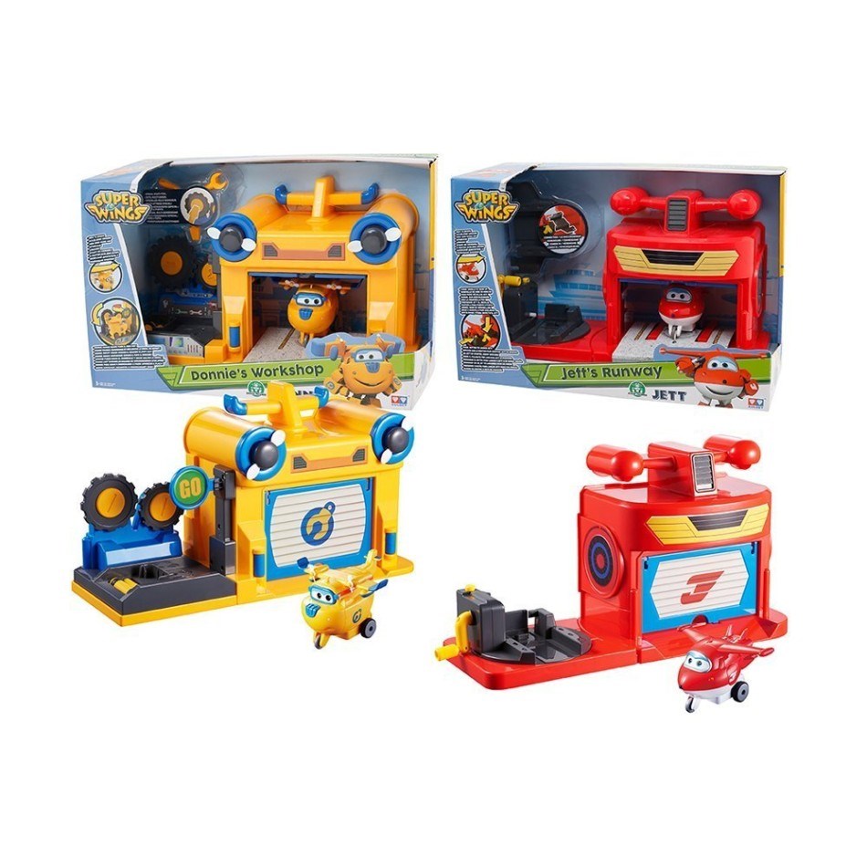 HANGAR DI JETT: Gira la manovella per dare la carica a Jett, poi premi il bottone per farlo schizzare via!